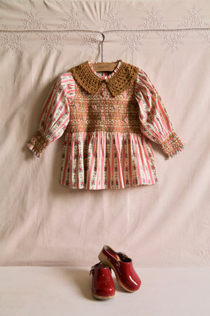 HANDSMOCK BLOUSE W/ REMOVABLE CROCHET COLLAR