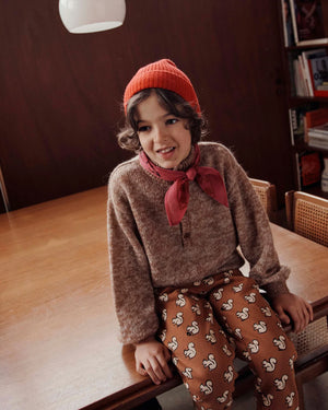 - Ribbed trim around round neckline, cuffs and hem
