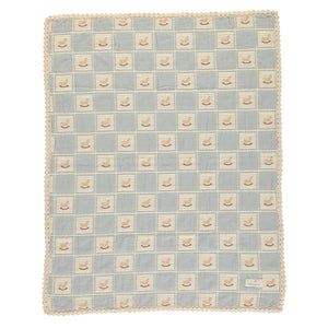 BEBE ORGANIC BLUE ROCKING HORSE PATCHWORK BLANKET