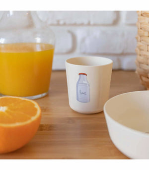 With the Konges Slojd Bon Appétit weaning baby set, your child will be perfectly equipped for his meals at the table. This weaning set includes 1 plate, 1 bowl, 1 cup, 1 fork and 1 spoon in ecru color. The components are made of "bio-plastic" from corn starch. They are also biodegradable so as to limit their environmental impact. The Bon Appétit or orange prints and the Scandinavian design will encourage your little one to eat all his meals. The set is dishwasher safe and can also be washed in warm soapy water. Its components are durable and easy for the child to grip. The raised edges help the toddler to use the spoons and forks without the risk of spilling.