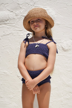 An iconic original. This sweet set delicately shirred to perfection crafted in Pure Linen or Cotton, our distinctive Agnes set features high waisted bottoms and adjustable tie shoulder straps. This season brings this best seller in new refined cut.