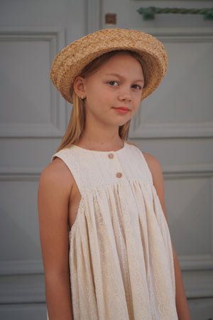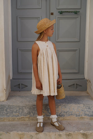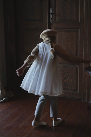 One of House of Paloma’s most distinctive and best-selling styles reimagined. The new Bijou dress has been designed in our ever so sweet signature fabrics for both comfort and elegance featuring delightful buttons, exposed shoulders and a flowing ruffled hem with a contrasting hemline.