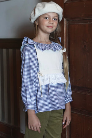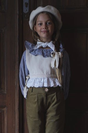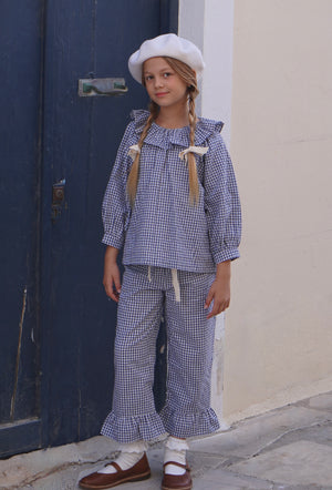 The darling Harriet, she is an everyday dream crafted in our ultra soft and delightful Bleu Nuit, with a relaxed fit, sweet cuff detail and darling collar frill, wear alone, layer or match with the coordinating Agatha Pant for ultimate style.