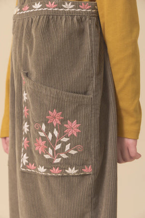 Folk-inspired embroidery adds a special touch of charm, while oversized patch pockets are ready to hold treasures gathered on woodland walks, park visits, and all the in-between moments. A playful, practical piece made for childhood in motion.
