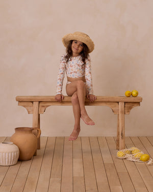 Our Crop Rashguard Set is the perfect look for your little surfer girls with a bikini top featuring criss-cross double straps and a v-neckline, matching bottoms + a coordinating cropped rashguard featuring a functional front zipper for easy wear.
