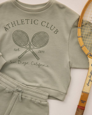 Featuring our 'sage' hue with our 'athletic club' spot print. This look is perfect for on and off the court.