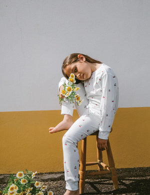 100% organic cotton, a very soft interlock fabric for maximum night-time comfort. Knitted ethically and printed in the U.K. using water based ink. Our sleepwear is proudly designed and made in Britain supporting independent suppliers and factories.