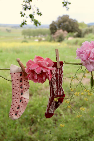 BONJOUR DIARY POLKA DOT FLOWER SOCKS / PINK