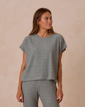 Style and comfort come together in our Cozy Rib Set! Featuring a relaxed fit boxy long sleeve tee and wide leg pants with an elastic waistband.