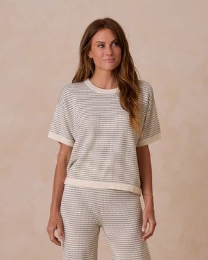 Featuring our 'sage stripe' pattern on our pointelle cotton knit. We are loving this summer knit look!