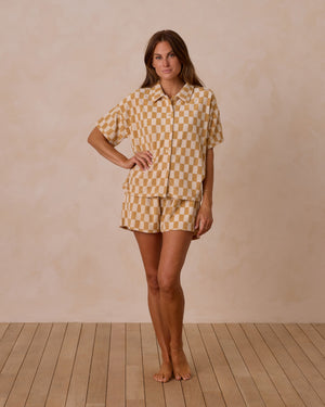 Featuring our ‘marigold check' pattern. Enjoy sunny days in this retro check look.