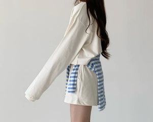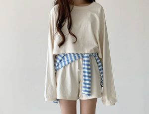 Perfectly paired long sleeve tee + shorts, this cozy set will be your go-to this season