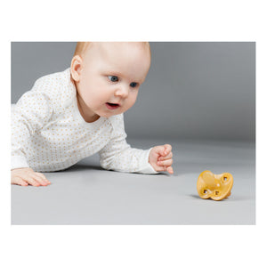 The HEVEA pacifier collection is the first in the world that is both 100% plastic free and colourful. Completely plant based, made out of 100% natural rubber and FDA approved natural colour pigments.