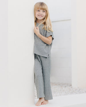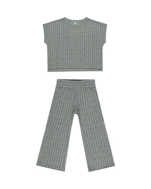 Style and comfort come together in our Cozy Rib Set! Featuring a relaxed fit boxy long sleeve tee and wide leg pants with an elastic waistband.