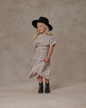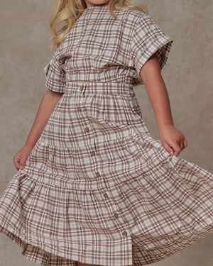 Featuring our 'mocha plaid' all-over pattern on ivory.