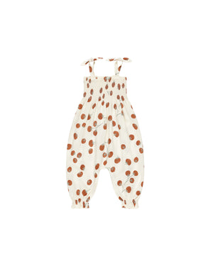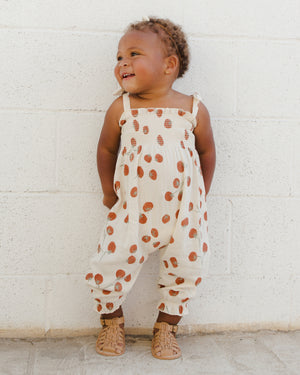 The smocked bodice, tie straps, and elastic ankle openings make Sawyer an everyday play essential.