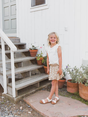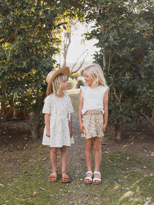 Featuring our 'white flora' all-over print on almond.