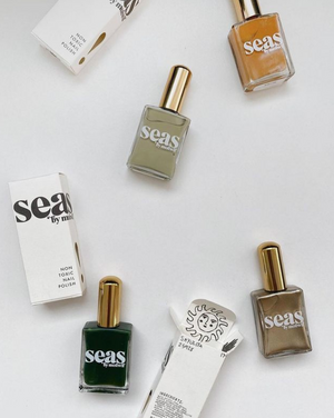 Seas by Merewif polish is a vegan friendly formula FREE of Toluene, Formaldehyde, Formaldehyde Resin, Camphor, Dibutyl Phthalate, Xylene, TPHP, Parabens, Fragrances, Animal Products, and Phthalates.