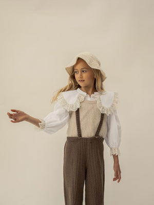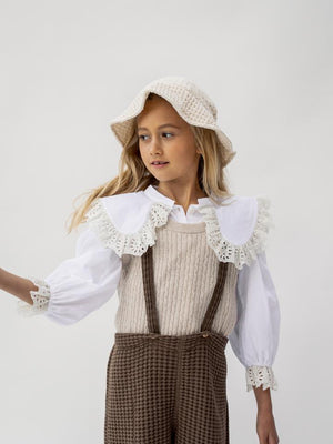 long sleeve blouse, frilled cuffs and EYELET peter pan collar